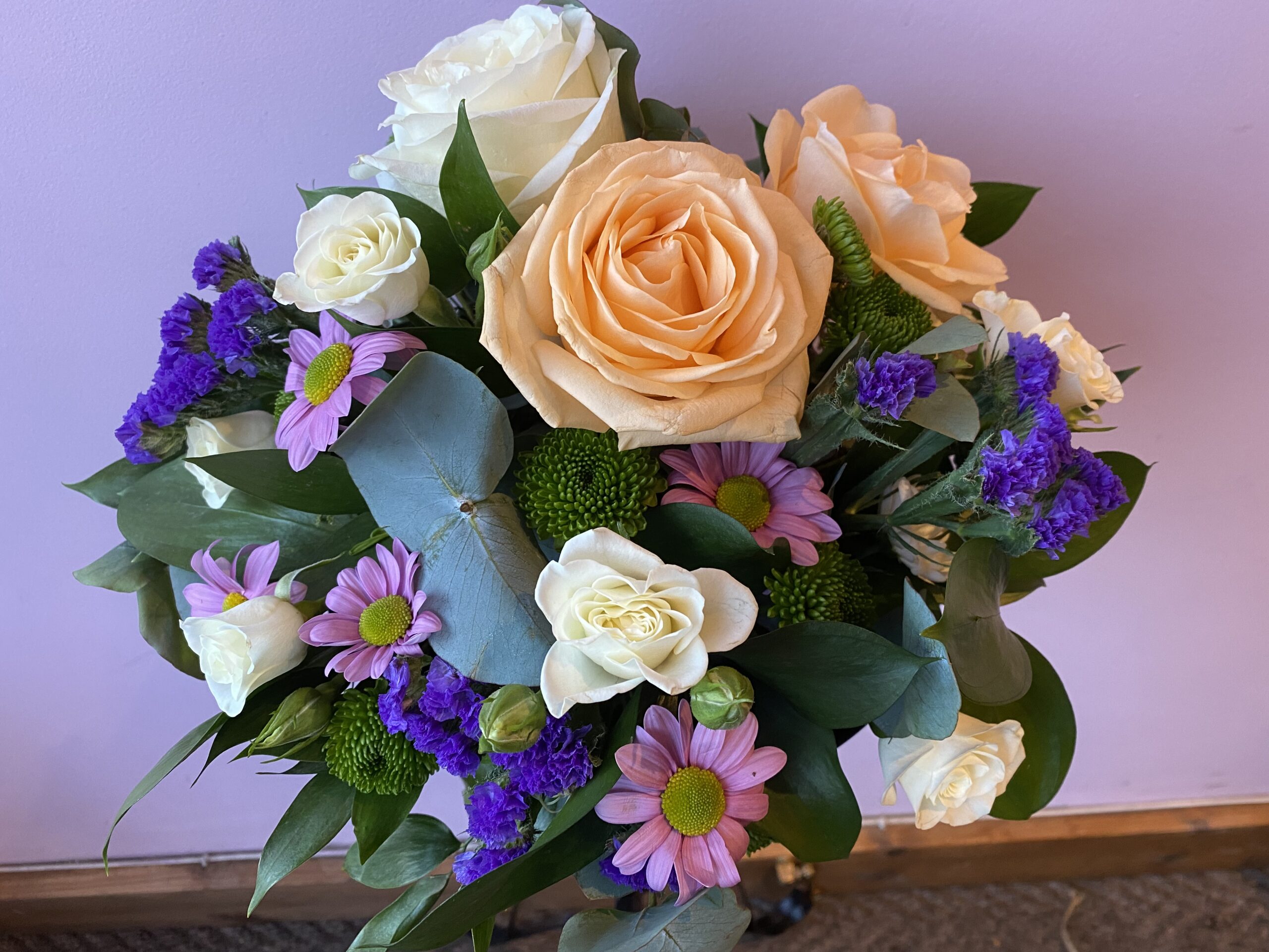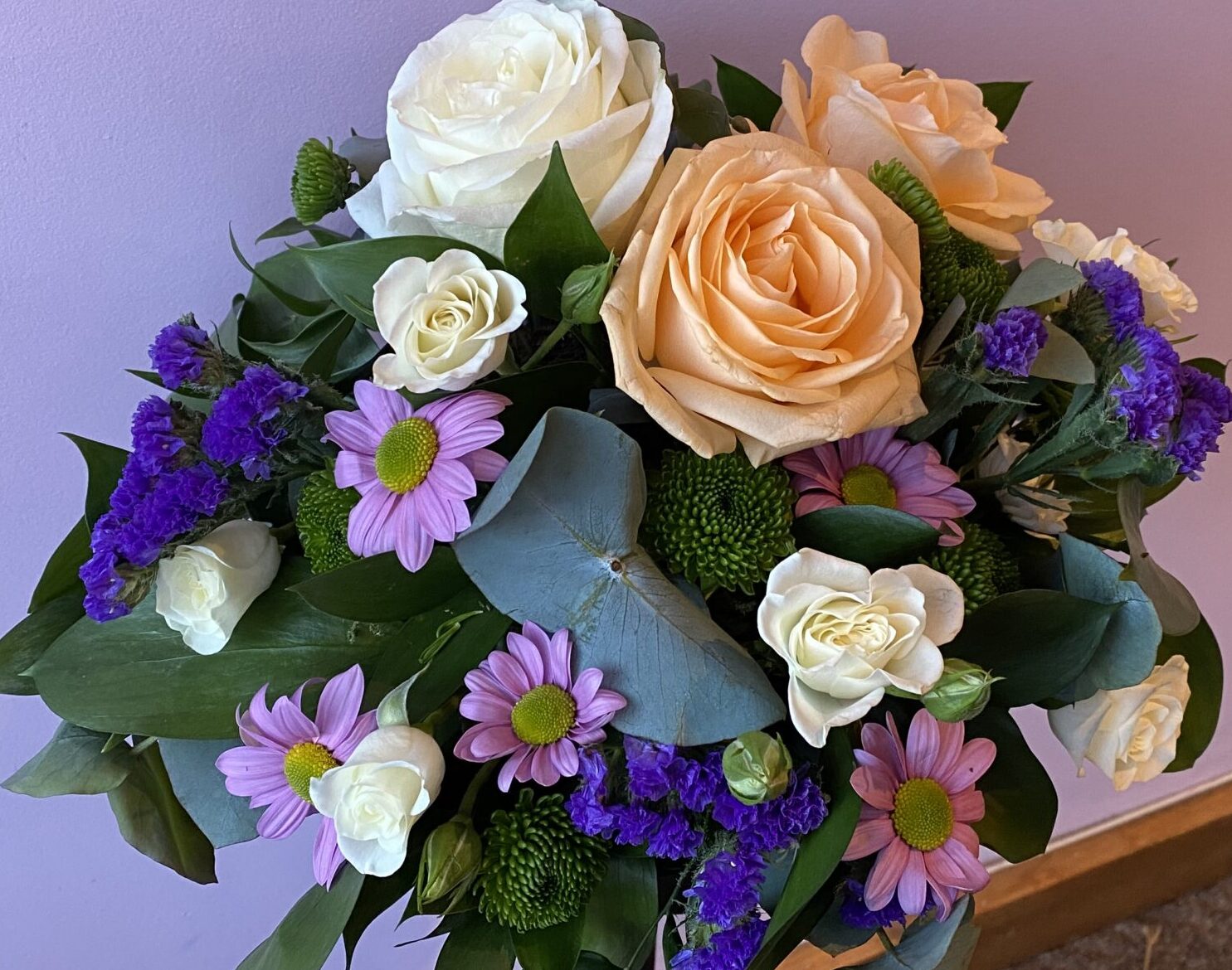 Eco friendly flower Posy – created using no foam or plastics only natural eco friendly materials. By using the colours and flowers of your choice we will create this beautiful natural flower posy for you for your loved one’s funeral or grave side.