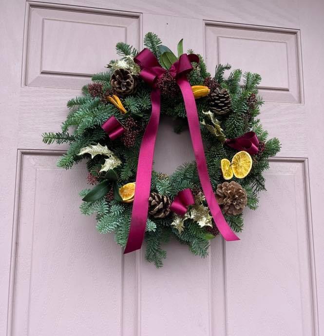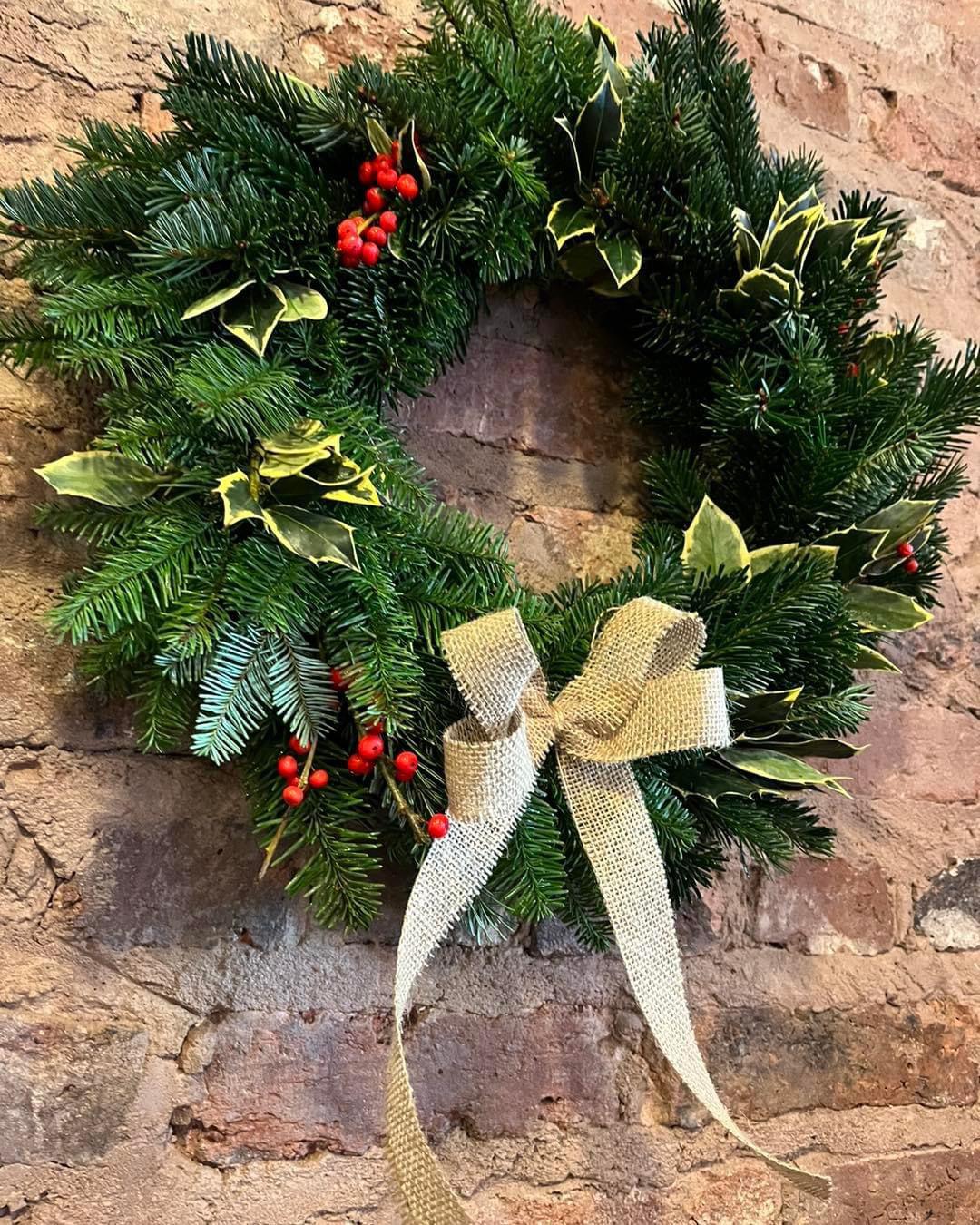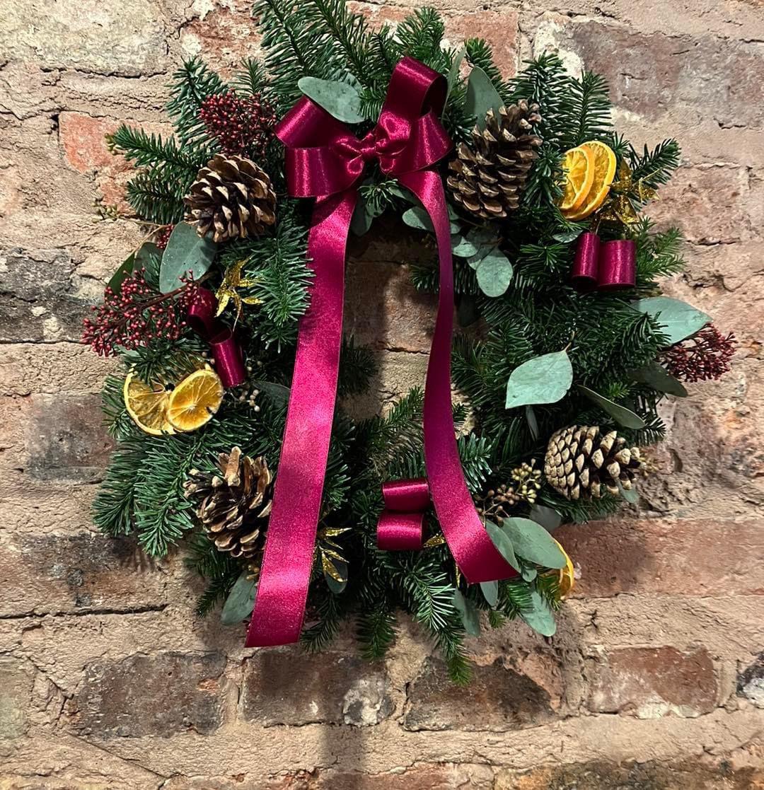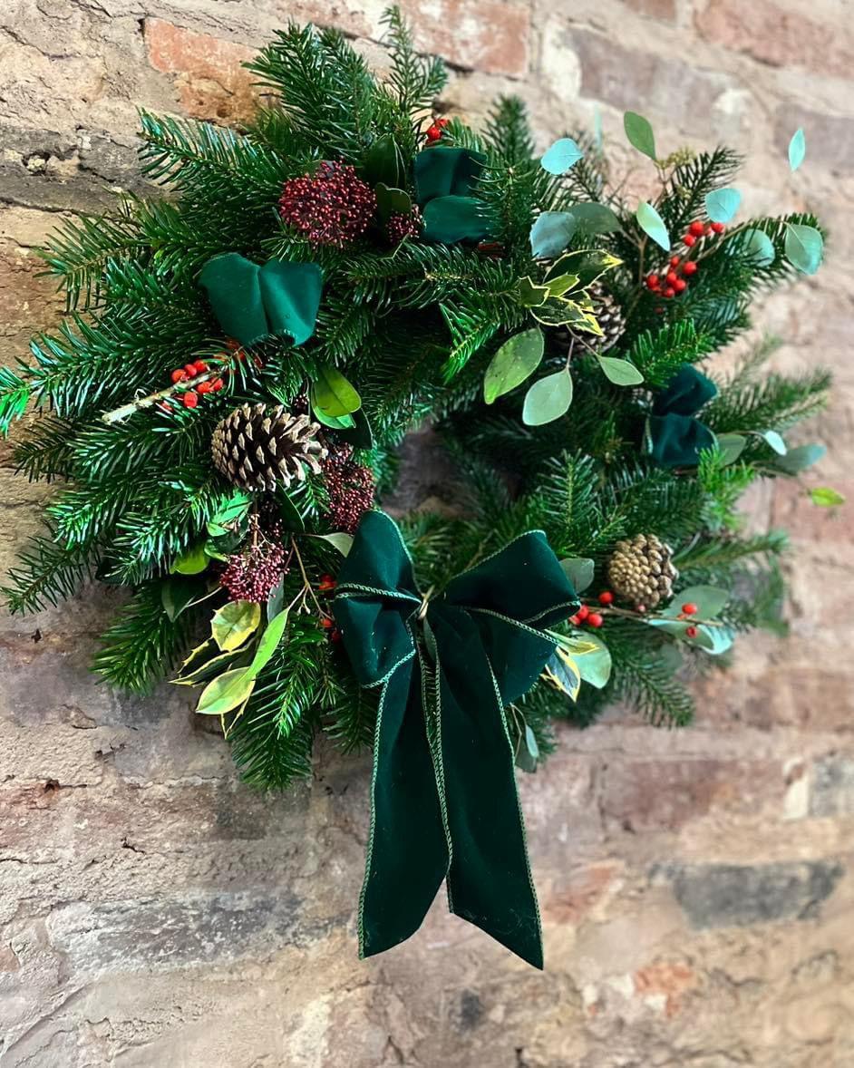 Stunning Fresh Christmas Wreath!  Make a statement with this luxury fresh wreath on your front door this year. Each wreath ordered will be handcrafted by us your local Derby & Derbyshire Florist with beautiful layers of winter foliages & berries intwined to create a luxurious thick Xmas wreath.