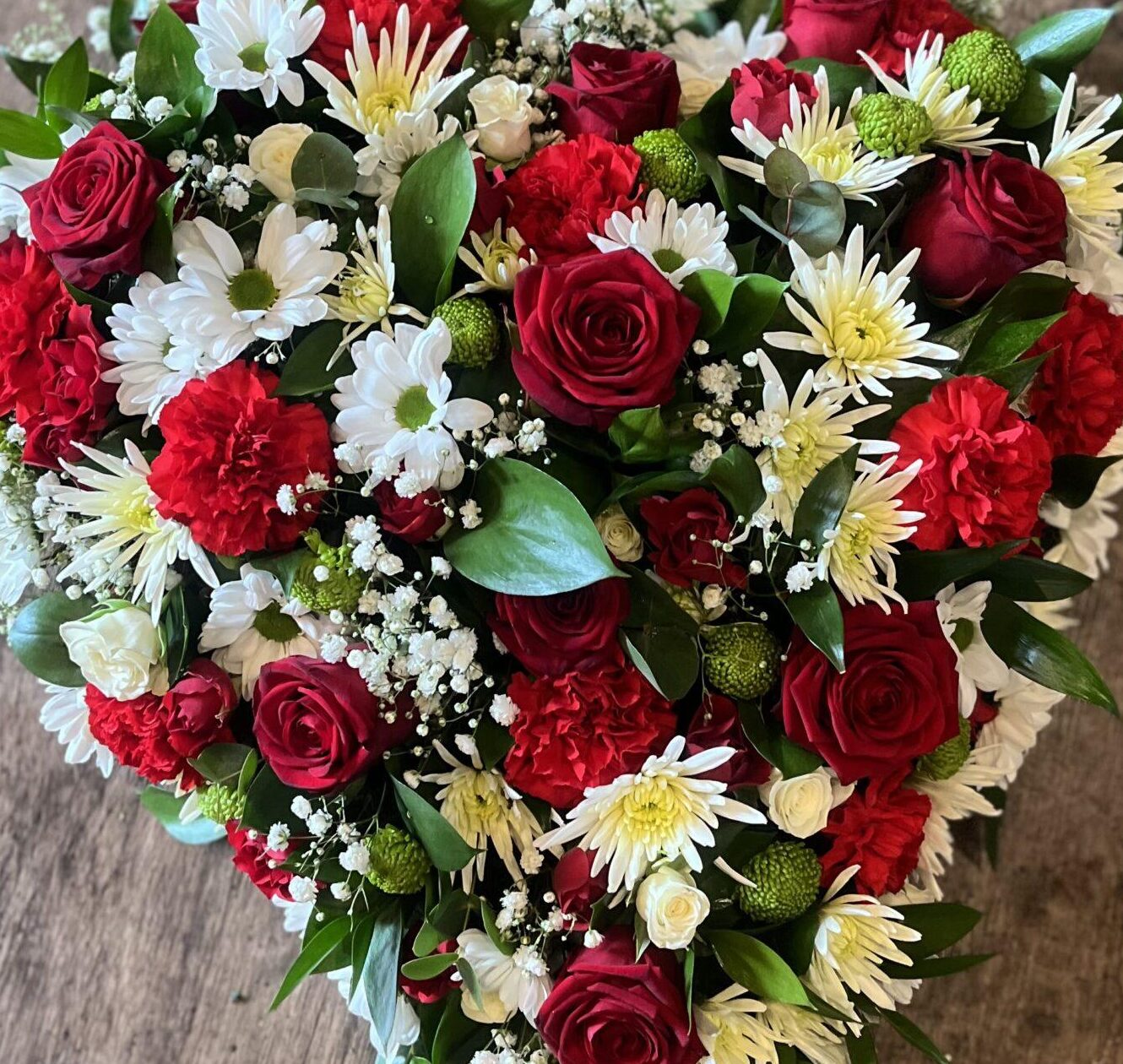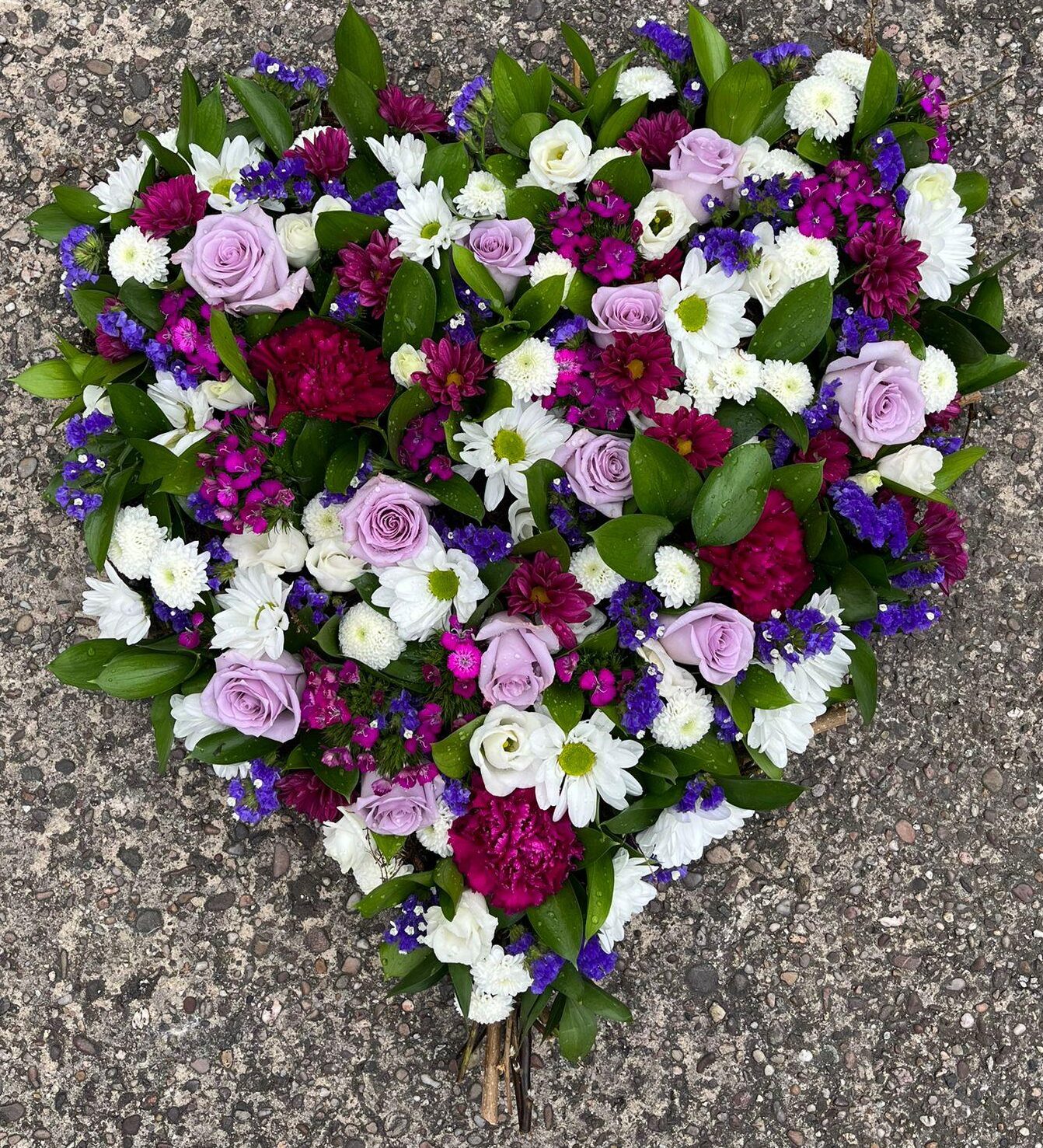 Eco friendly full heart wreath -Our beautiful floral wreaths are created using no foam or plastics only natural eco friendly products. By using the colours and flowers of your choice we will create this beautiful natural floral wreath for your loved ones funeral or grave side.