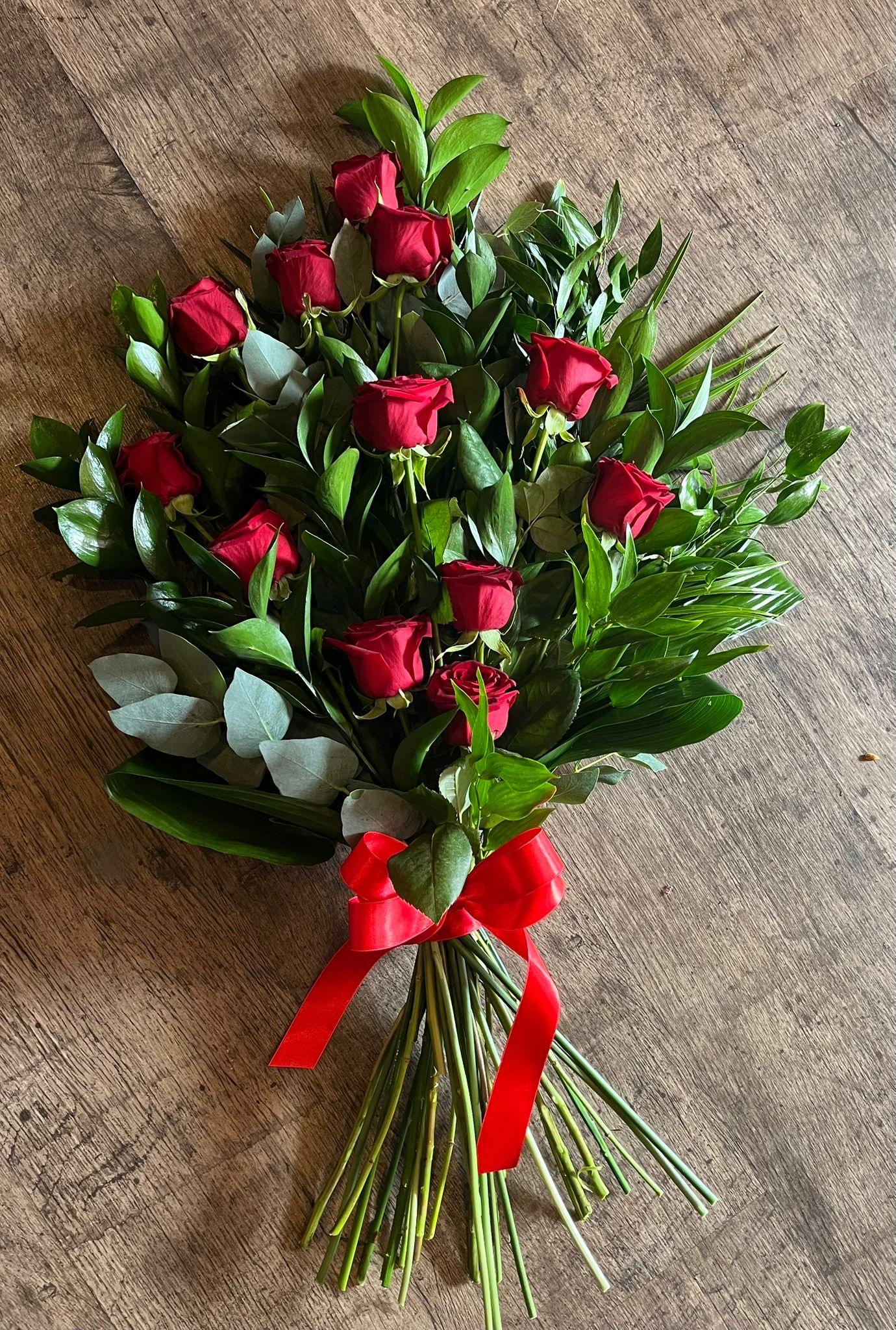 Rose Tied Sheaf – roses mixed with foliage. We will create this beautiful natural flower sheaf for you for your loved one’s funeral or grave side.